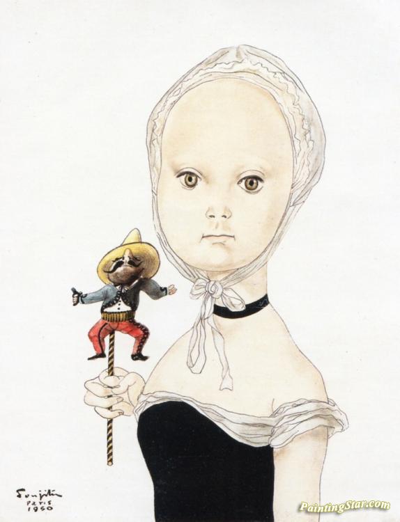 Girl with a Mexican Doll, Art Painting by Tsuguharu Foujita