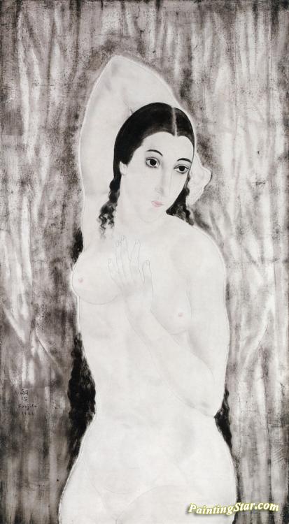 Nude with Raised Arms, Art Painting by Tsuguharu Foujita