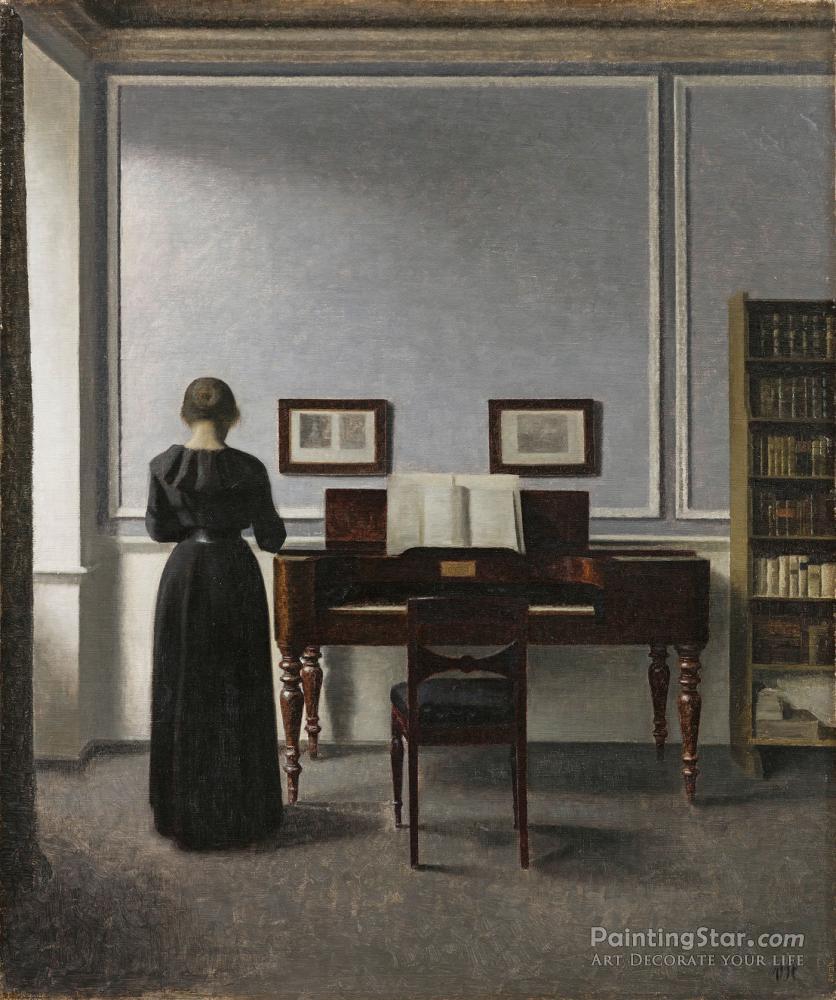 Interior, With Piano And Woman In Black, Strandgade 30, 1901, Art Painting by Vilhelm Hammershøi