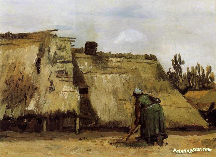 Cottage with Woman Digging, Art Painting by Vincent Van Gogh