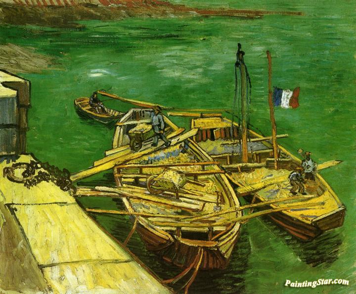 Quay with Men Unloading Sand Barges, Art Painting by Vincent Van Gogh