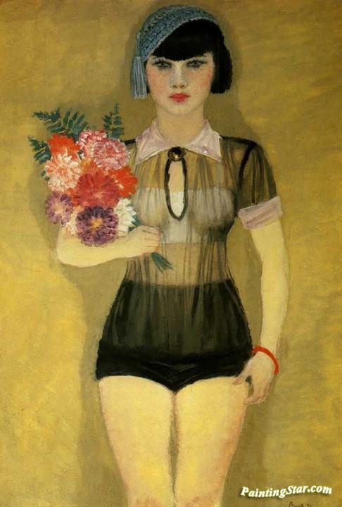 Girl With A Bouquet, Art Painting by Vladimir Lebedev