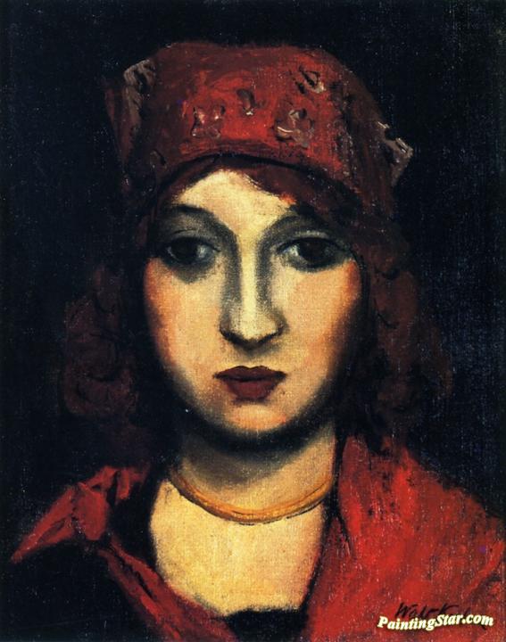 Portrait Of A Woman With A Red Kerchief, Art Painting by Walt Kuhn