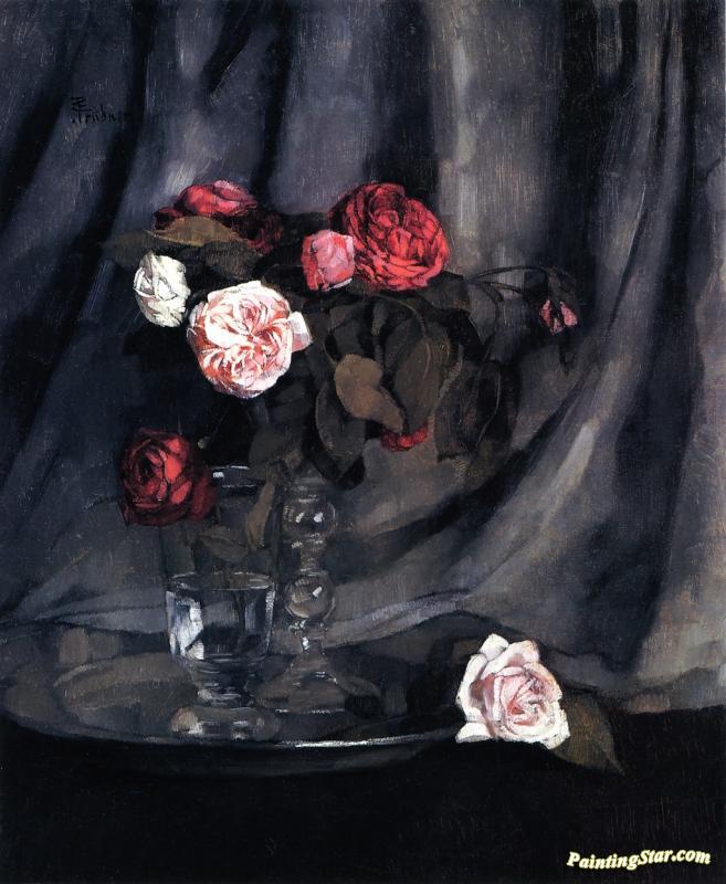 Red And White Roses, Art Painting by Wilhelm Trübner