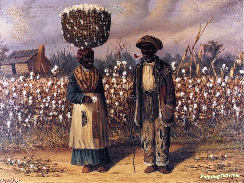 Negro Man And Woman In Cotton Field With Baskets Of Cotton, Art Painting by William Aiken Walker