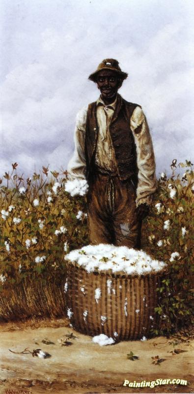 Negro Man In Cotton Field With Basket Of Cotton, Art Painting by William Aiken Walker