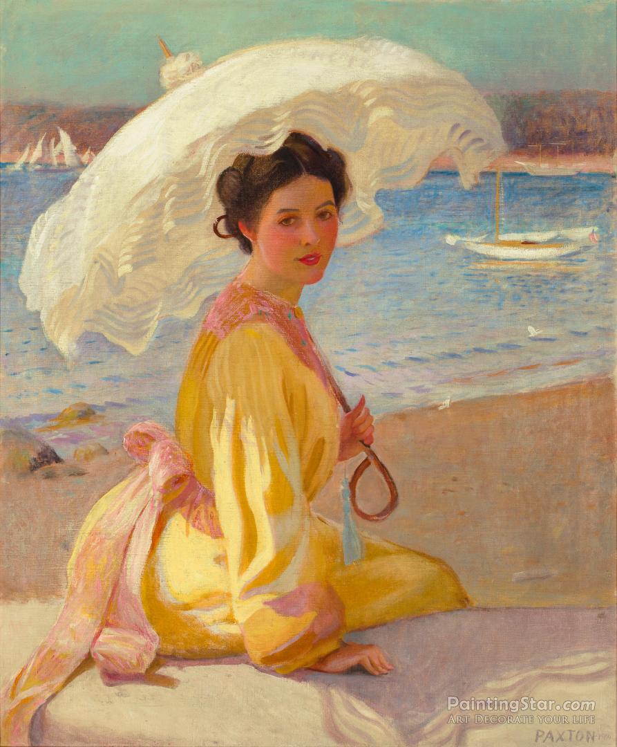 Girl With The Sea Beyond, Art Painting by William Mcgregor Paxton
