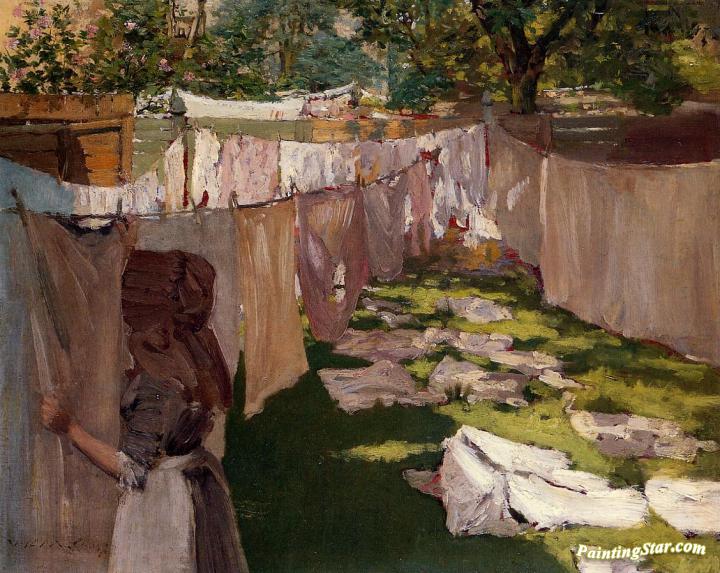 Wash Day - A Back Yard Reminiscence of Brooklyn, Art Painting by William Merritt Chase
