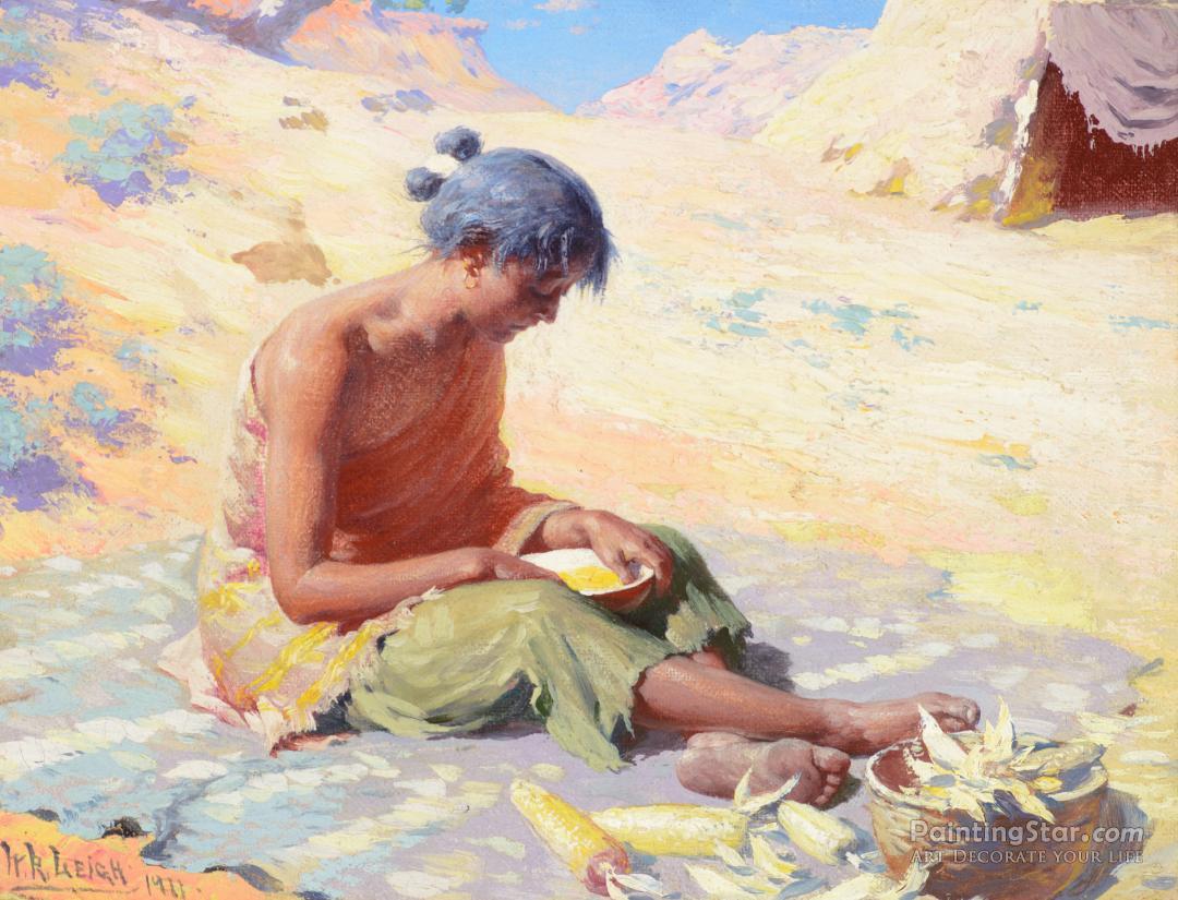 Navajo Girl Preparing Corn, 1911, Art Painting by William Robinson Leigh