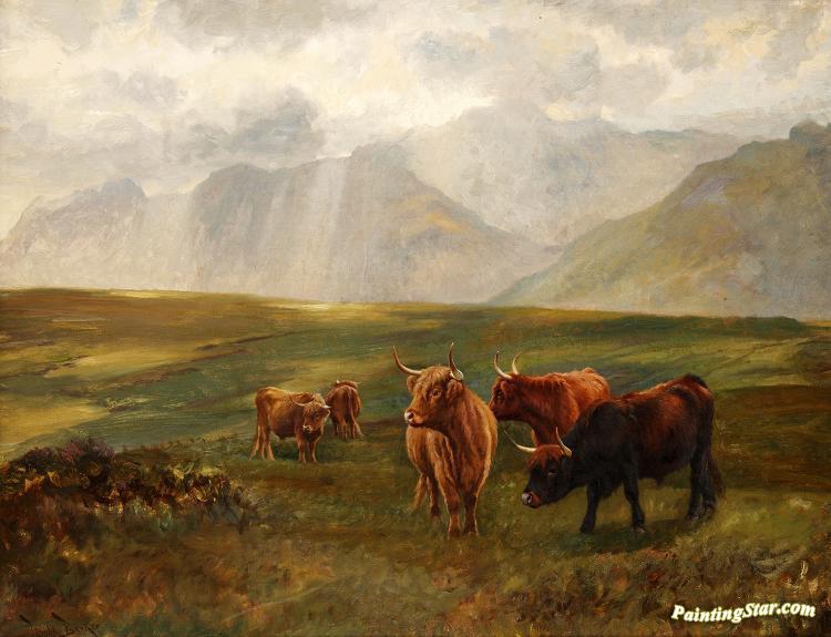 Highland Cattle In A Landscape, Art Painting by Wright Barker