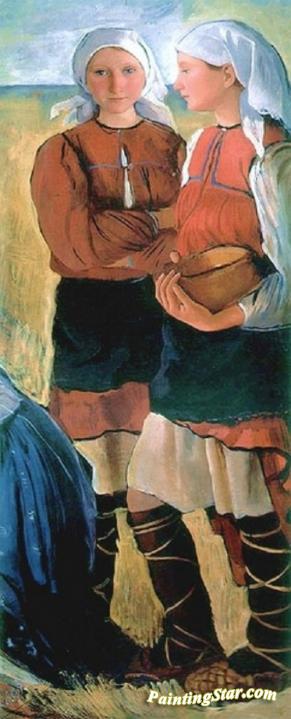 Two Peasant Girls, Art Painting by Zinaida Serebriakova